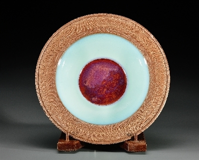 清风徐来,水波不兴。杨晓锋创作的《玄音》,窑变意境如彩霞映空,又如碧水微波,配以道道弦纹,亦宛如可奏出天籁玄音的古器。这样一件可以引发观者无尽遐想的作品,已被中国美术馆收藏。