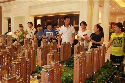 市民在沙盘前选房。