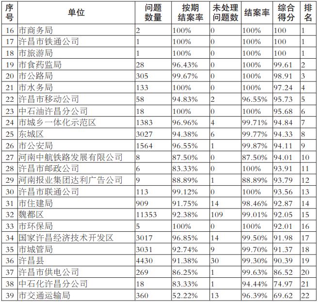 许昌市数字化城市管理工作2016年12月份绩效考评排名情况统计表