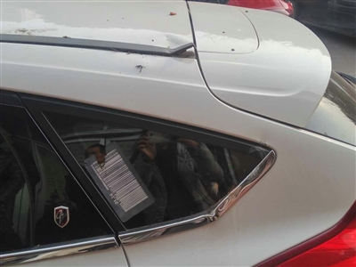 赵女士说,2月3日上午,她开车到新许路办事,将车停放在许昌县新华书店家属院外面。她准备开车走的时候,发现车顶和后窗玻璃被砸坏了(如图),车顶和车周围散落着一些瓷砖碎片。她仔细观察发现,这些瓷砖是从该家属院一栋临街楼外墙上脱落的。