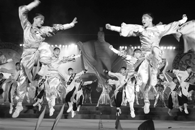 2009年6月1日晚,许昌第三届三国文化周期间,演员在大型音乐舞蹈史诗晚会上进行表演。