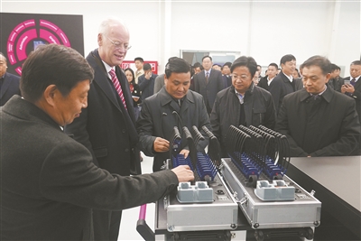 市委书记武国定在鲁道夫·沙尔平的陪同下参观德国企业。市外侨办提供
