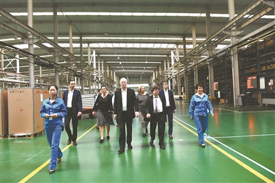 鲁道夫·沙尔平等人参观考察森源集团。 市外侨办提供