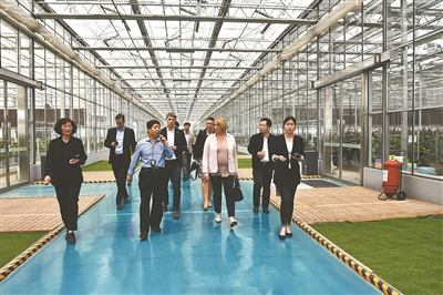 德国黑森州客人参观考察建业绿色基地。 市外侨办提供