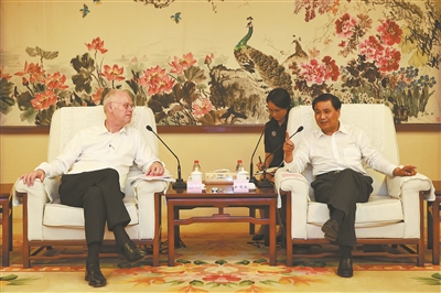 市委书记武国定会见鲁道夫·沙尔平。 崔雨梦 摄
