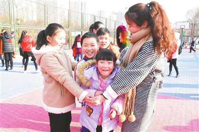 2月6日,许昌市兴业路小学的小学生与许昌博爱儿童康健园的孩子们一起来到市区清潩河游园做游戏,共享节日的欢乐。 刘晓敏 摄