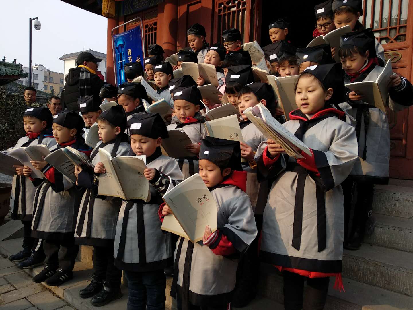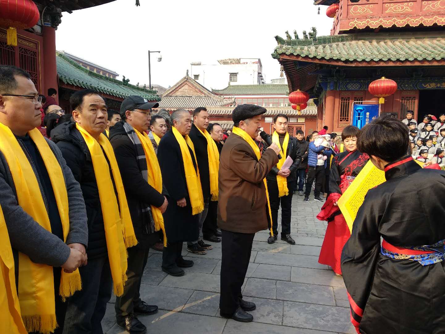许昌兴文兴教的传统已久,在春秋楼景区中轴线的西侧便是文庙院。当天上午,前来参加鸣钟祈福活动的市民群众还能一览祭孔大典的盛况。