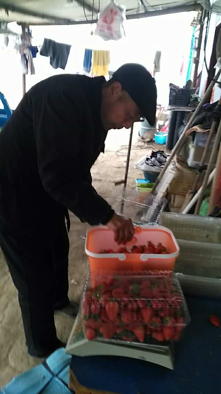 “30元一斤,和平时价格一样。”宋贺红一边采摘一边回答,“这价格可不贵呀,你看我这儿的草莓多鲜!而且还不打农药。”说着,他摘下一颗红透的草莓塞给记者品尝。