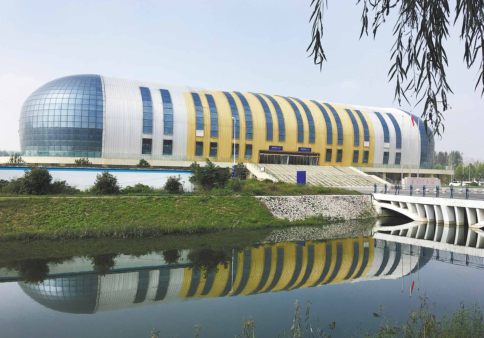 7月23日,记者在长葛市魏武大道拍摄的该市体育馆与它的水中倒影相映成趣。据了解,该体育馆可容纳5000人,可同时满足竞赛、训练、大型集会及文艺演出等多方面的需要。