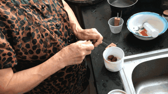 范奶奶演示自己制作的去核小工具