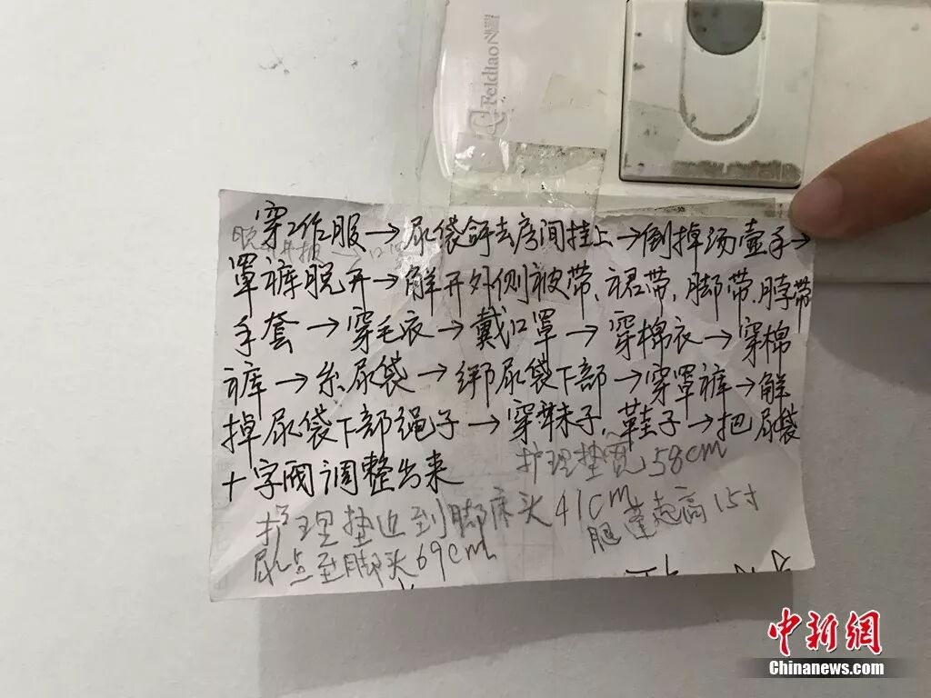 走进范奶奶家的卧室,只见墙壁上贴着不少小纸条,走近细看,发现上面写满了护理汪爷爷的注意事项,被夸赞细心、体贴,范奶奶还有些害羞。