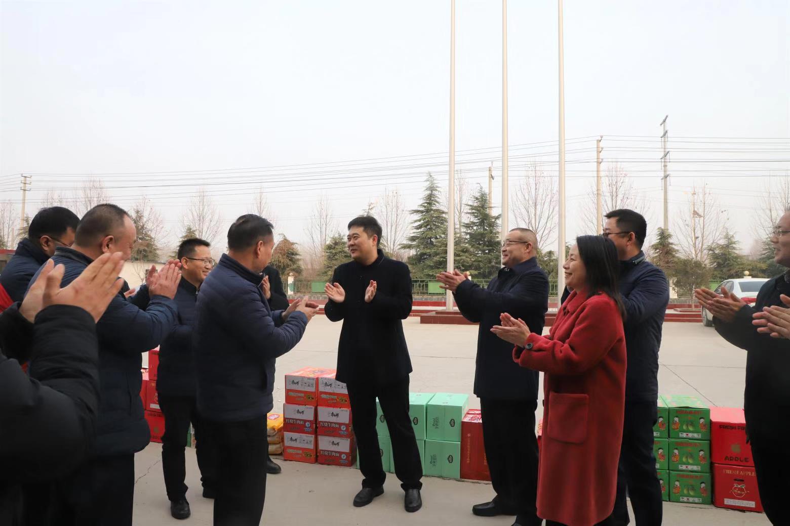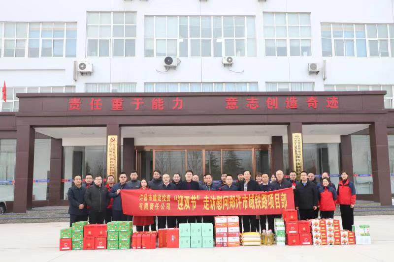 1月14日,许昌建设投资有限责任公司开展“迎双节”走访慰问活动,深入郑许市城铁路项目部走访慰问施工建设者,给他们送上诚挚的慰问和新春的祝福,并给他们送去米、油、牛奶、方便面、核桃、苹果、梨、橙子等生活用品。