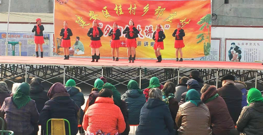每月初九,是郅庄村老年人最快乐的日子。1月3日,随着音乐声响起,郅庄村舞蹈队队员身穿红色服装翩翩起舞,戏曲小品、豫剧选段、歌曲……节目形式多样。看着家人和街坊邻居在舞台上表演,该村老年人感觉格外亲切。