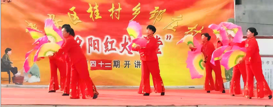 不多时,郅庄村村委会大院便人声鼎沸,丝毫没有冬日的寒意。舞台上有人唱歌、跳舞,舞台下坐满了看演出的村民。当日,该村70岁以上的老人都是主角。这已是郅庄村举办的第四十二期“夕阳红大讲堂”活动。
