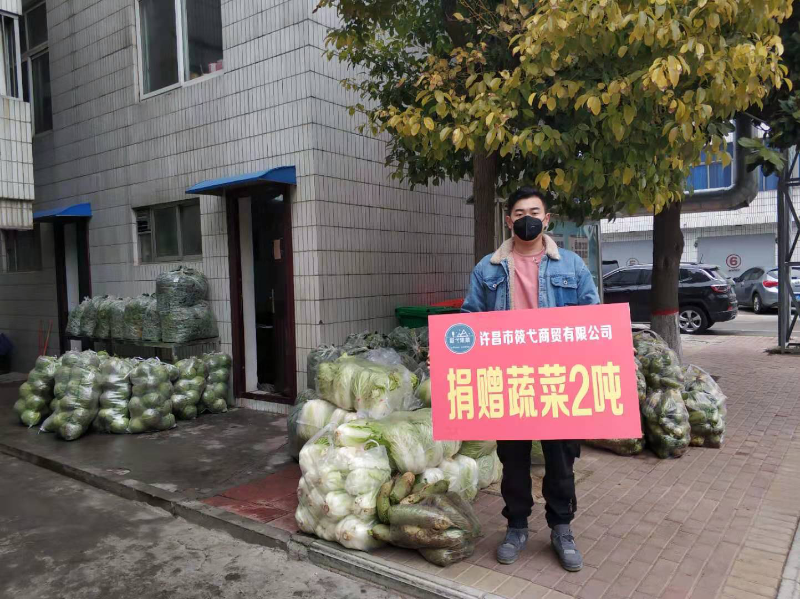 随后,一行人与许昌筱弋商贸有限公司负责人刘总来到市公安局,现场向全体公安干警捐赠新鲜蔬菜2吨、面粉500斤。用实际行动助力我市疫情防控工作,为打赢疫情防控阻击战贡献企业力量!