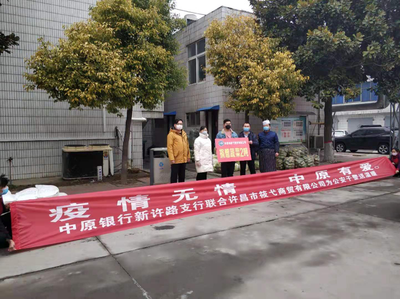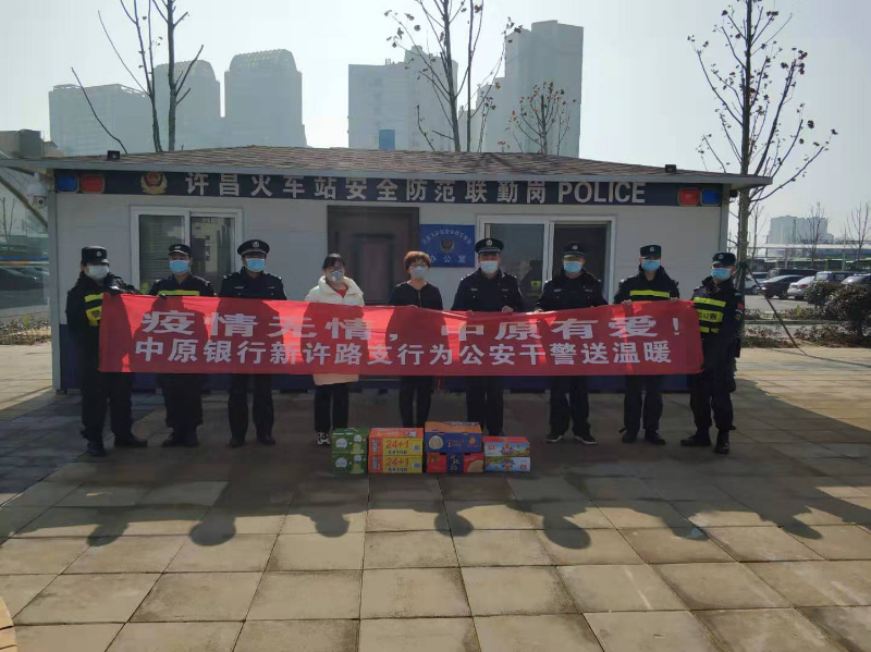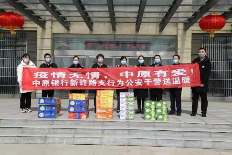 近日,中原银行许昌新许路支行联合爱心企业许昌筱弋商贸有限公司,前往市公安局开展“疫情无情,中原有爱”送温暖活动。