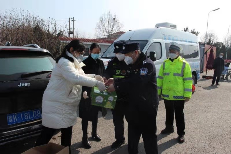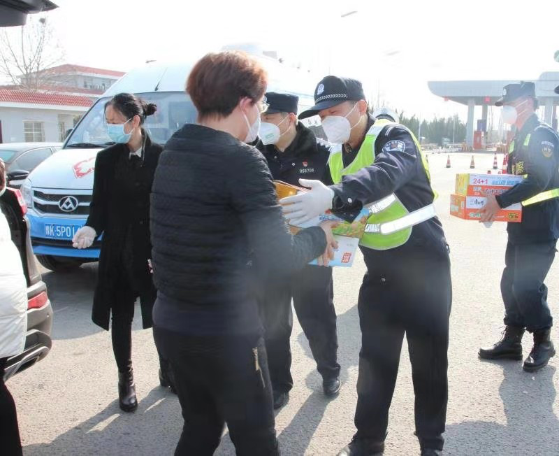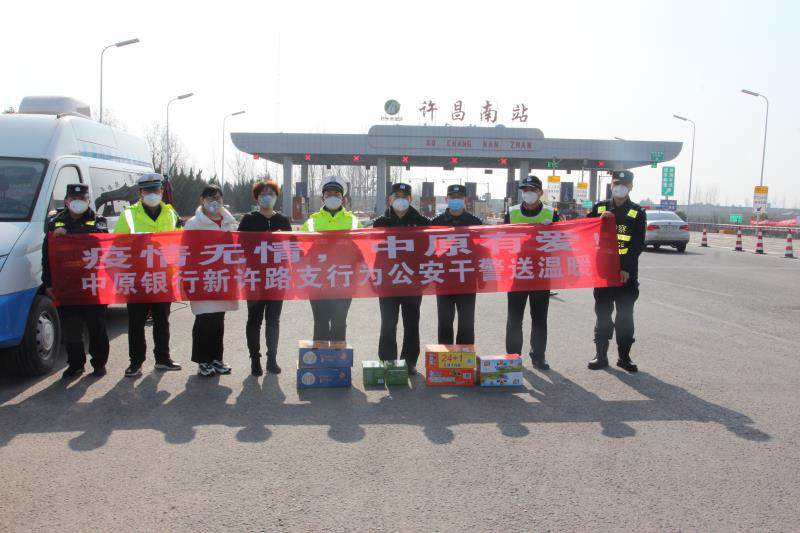 2月12日上午,新许路支行一行人,先后来到市公安局设置在火车站、京港澳高速出口、许平南高速出口、榆林三所等处的执勤站点,为坚守疫情防控一线的公安干警送上了奶制品、水果、火腿肠、方便面等慰问品。以感谢他们为疫情防控所付出的辛勤努力,并向他们表达了新许路支行全体员工的崇高敬意。