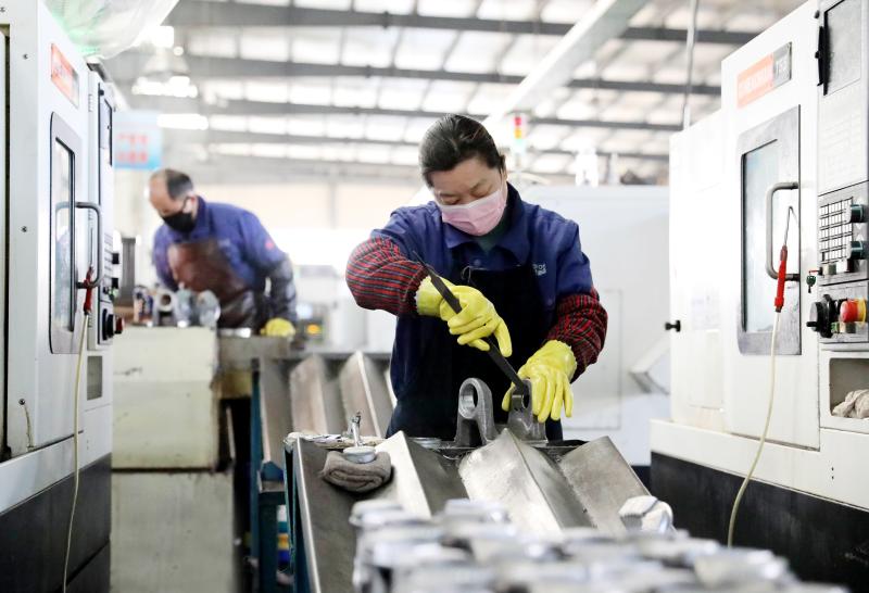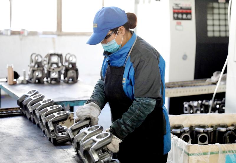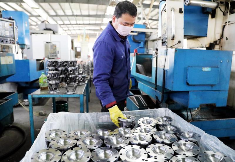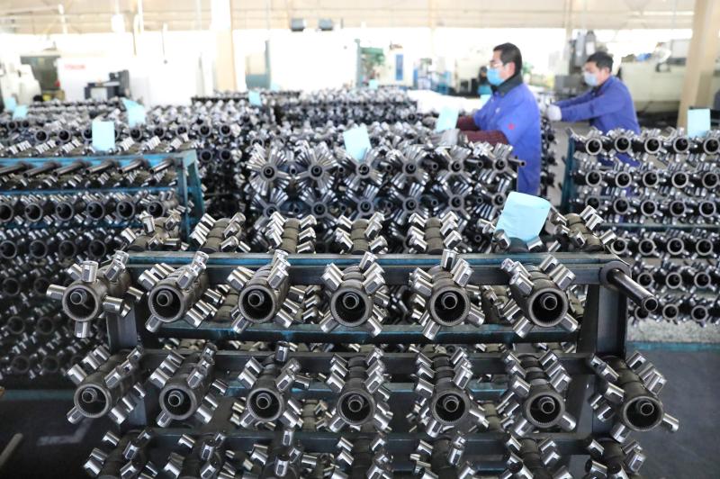 2月18日,许昌远东传动轴股份有限公司员工正在忙着生产传动轴配件产品。自2月10日起,该公司围绕各类传动轴订单产品生产需求,采取每天为上岗工人量体温、配发口罩,生产车间一天两次消毒等防护防疫措施稳步推进企业复工复产。