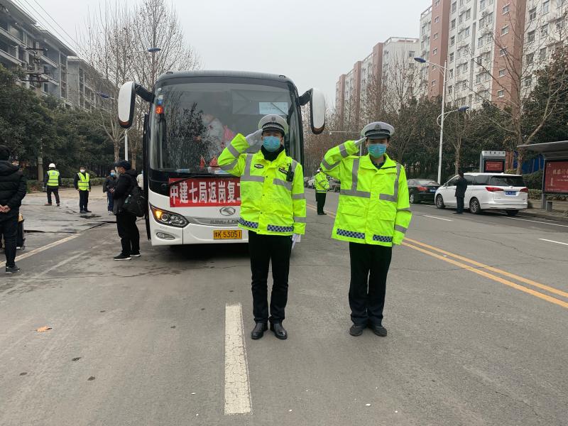 2月23日,许昌市公安局交通管理支队接到中建七局在许在建项目——中建观湖珑府项目部请求,希望许昌交警协助其远赴四川眉山迎接项目建设者返许复工。
