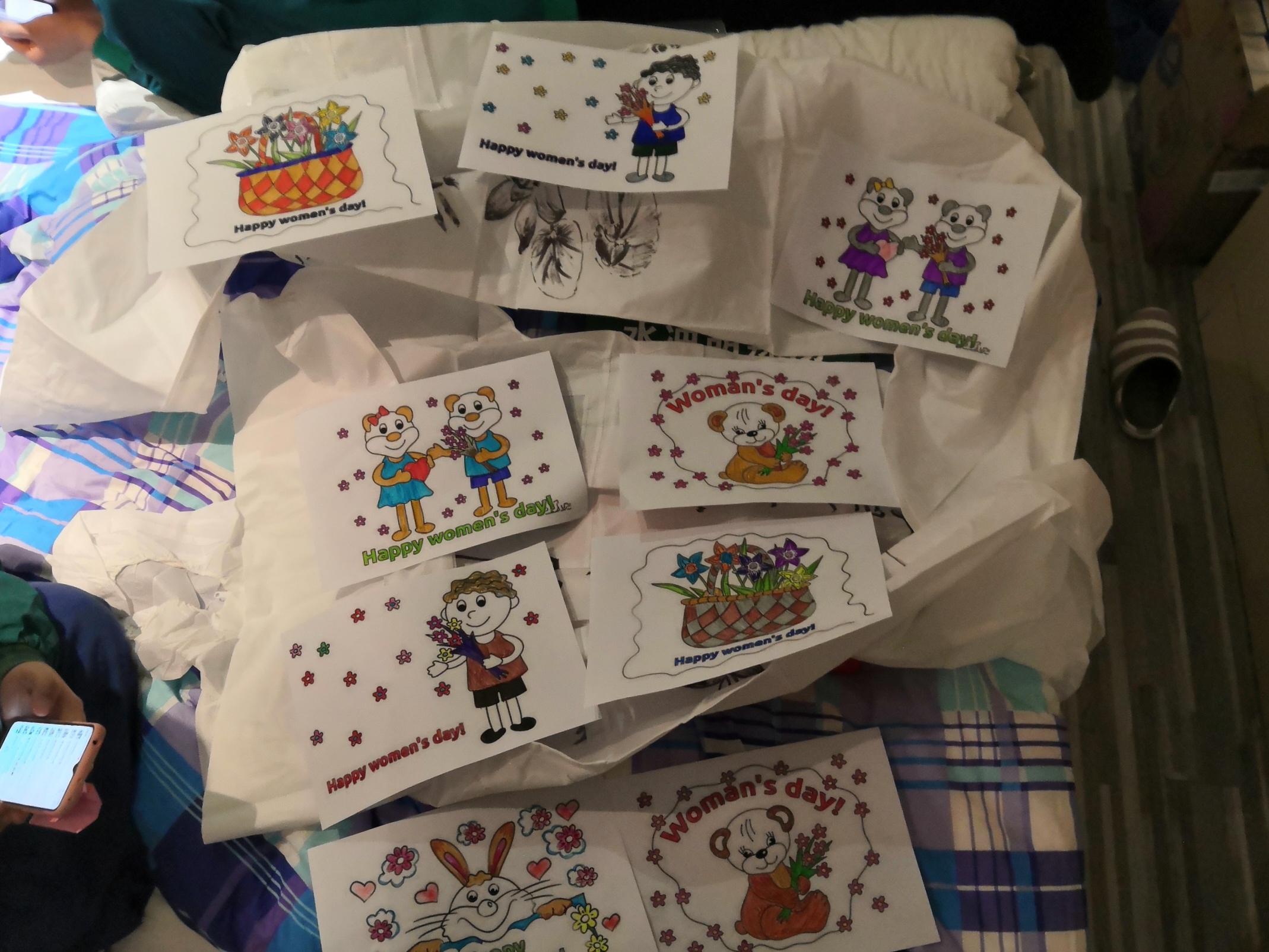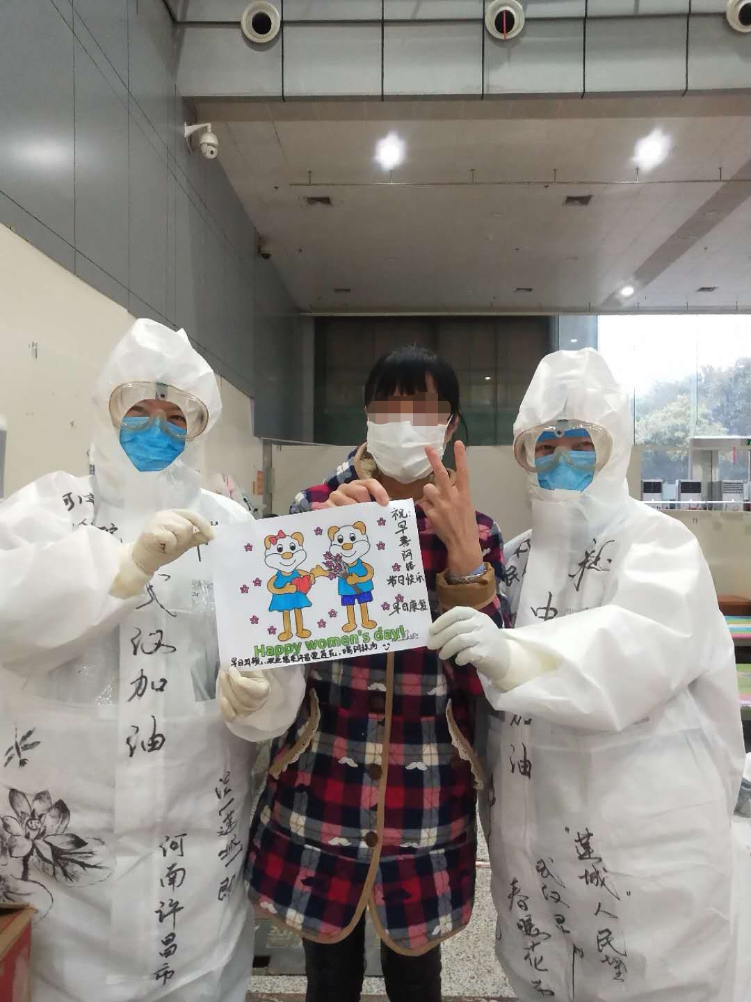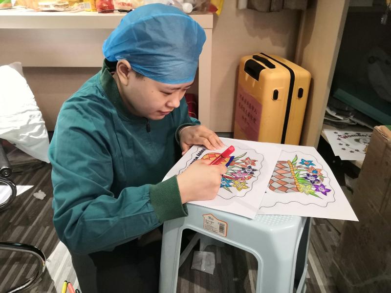 3月8日凌晨2时,邵瑞彬和朱佳玉走进江汉方舱医院,最后一次上岗。6时,她们给已经起床的患者发放早饭,并送上节日祝福:“阿姨,节日快乐!”7时左右,她们在每幅水彩画上写上患者的名字,一一送给她们。