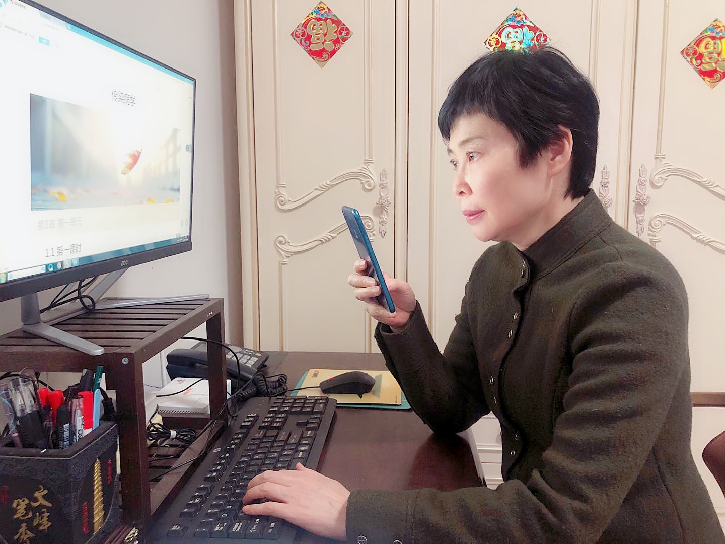 作为高校教师,郑晓冬一直承担着教学任务。新学期,她将担负着几个班的课程授课任务。在“停课不停学”的特殊时期,她积极准备线上课程,50多岁的她像年轻人一样在线上平台建课、上传资料。为保证课程效果,她还让家人来做她的“模拟学生”,面对面直播、面对面同步课程,做网络课“主播”。