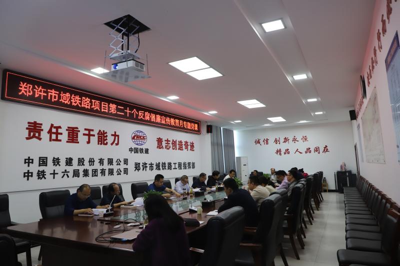 5月份是十六局第二十个反腐倡廉宣传教育月。为开展落实全面从严治党“两个责任”,持续推进党风廉政教育和反腐败工作,4月27日下午郑许市域铁路工程指挥部立即组织学习贯彻会议精神,并结合会议贯彻落实要求,切实把责任扛在肩上,把部署落到实处。