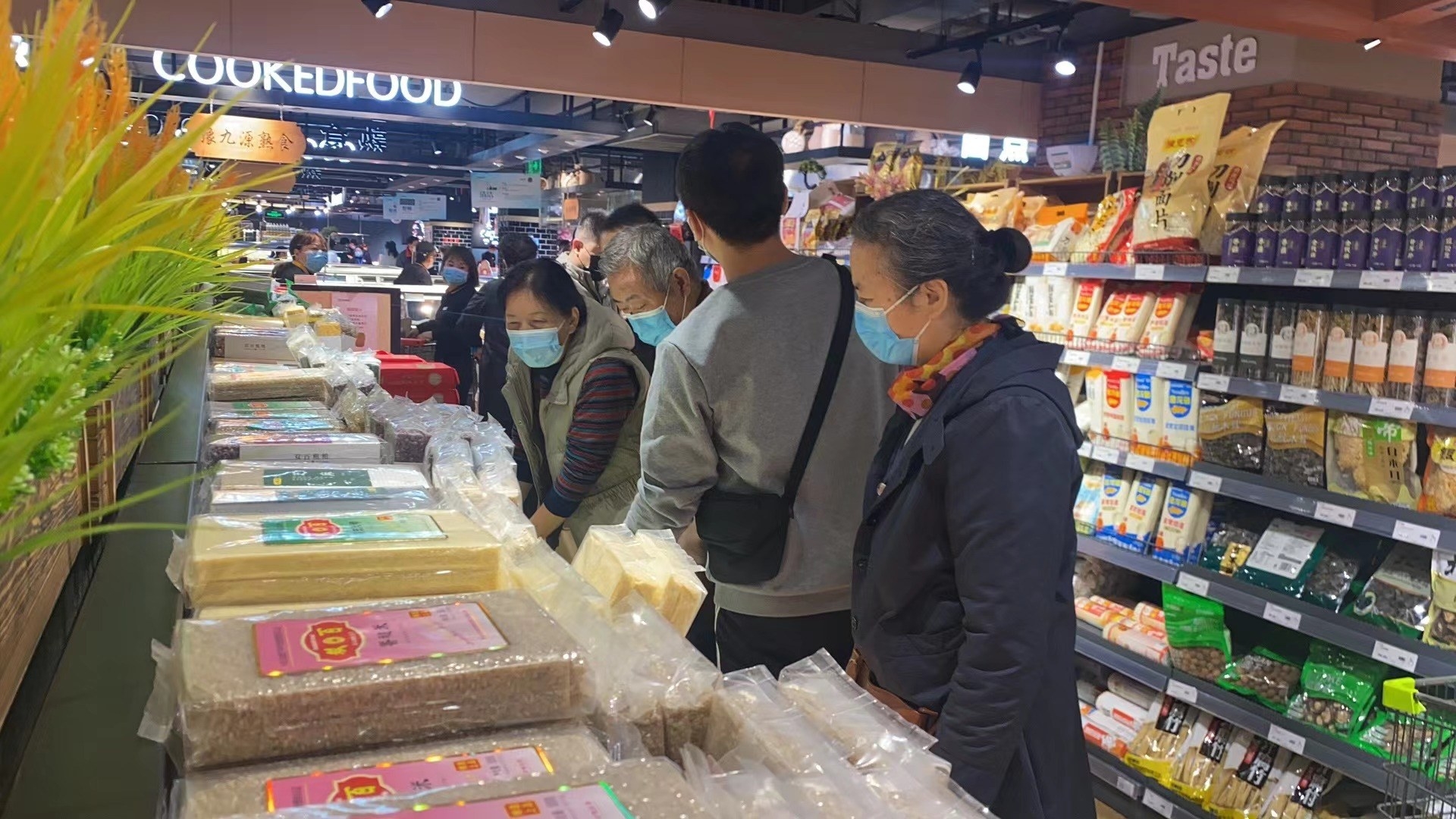 顾客在该超市从容选购食品。
