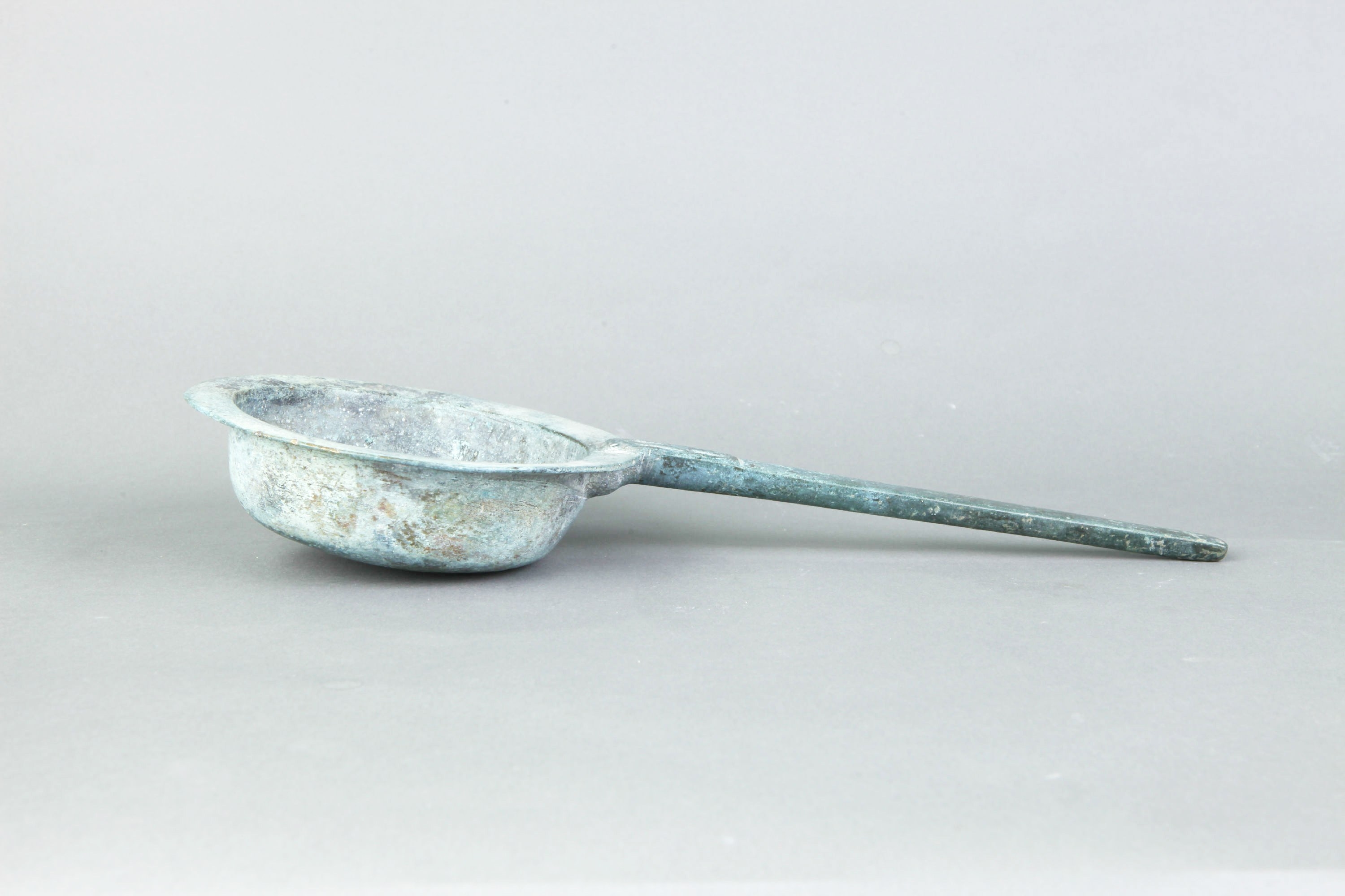 “古人在熨衣服前,会把烧红的木炭放在熨斗里,等底部热得烫手了再去烫衣料。小铜盆的口沿比较宽,就是为了防止烧红的炭灰溅落到衣服上。”陈文利告诉记者,这个造型有些独特的熨斗,长长的手柄前方呈圆圆的盏状,是汉代大户人家的“奢侈品”。