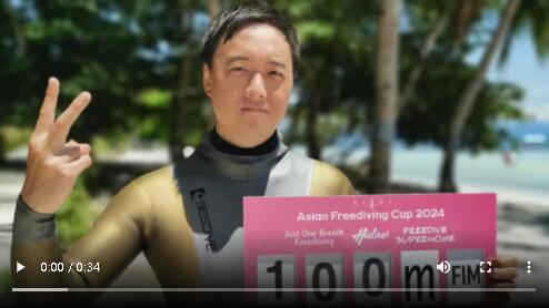 5月26日至6月5日,2024年自由潜水亚洲杯深度赛在菲律宾邦劳岛举行,来自世界各地的百名顶尖潜水员齐聚一堂,突破自己的极限。在亚洲自由潜水杯FIM(攀绳下潜)项目比赛中,河南选手于志瀛发挥出色,取得攀绳下潜(FIM)100米白牌,并获得该项目的第三名。这个成绩目前在中国排名第三、亚洲排名第六。至此,于志瀛也成为中国第一个破攀绳下潜百米的90后潜水员。
