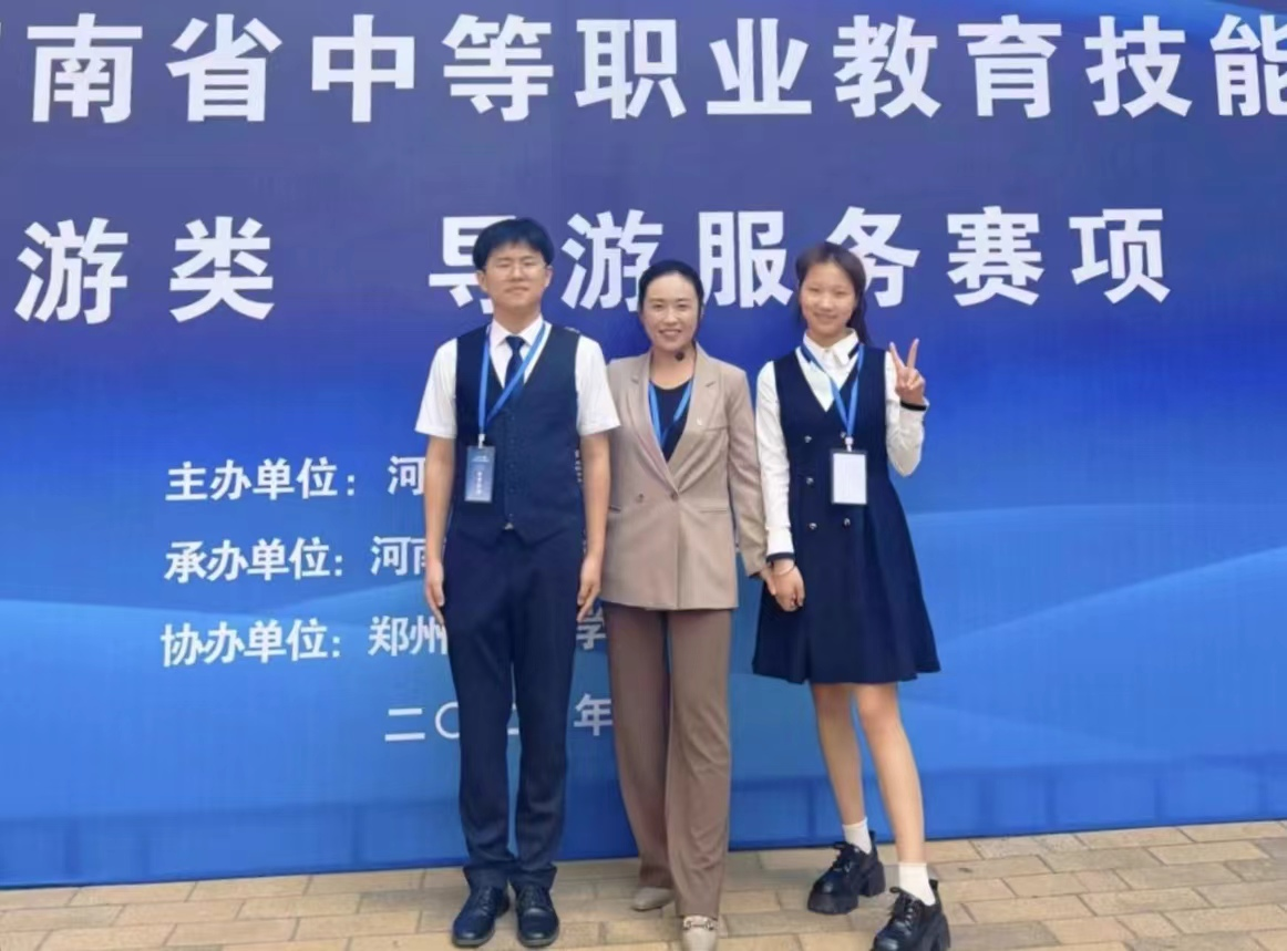 在10月13日结束的2024年河南省中等职业教育技能大赛“导游服务”赛项中,我校23级酒旅对口班的张豪锦、李馨雨两位同学分别荣获报送选手组和全员化抽取组一等奖,马迎青老师荣获教师组二等奖。据了解,该赛项共有来自全省40支中职代表团队共计125名选手参与角逐。
