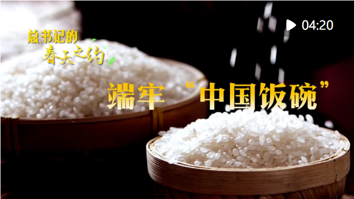 把穗观粒,察土问技,习近平总书记始终惦念粮食安全。2018年9月,总书记再次踏上这片沃土。他走进稻田,拿起一把稻穗,看稻粒、观成色。他说:“中国人要把饭碗端在自己手里,而且要装自己的粮食。”