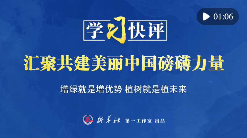 “汇聚共建美丽中国的磅礴力量,让祖国大地更加绿意盎然、生机勃发”。3日,习近平总书记参加首都义务植树活动,号召大家积极参与造林绿化,共同推进生态文明建设。