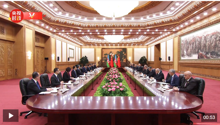 4月23日上午,国家主席习近平在北京人民大会堂同来华进行国事访问的阿塞拜疆总统阿利耶夫举行会谈。