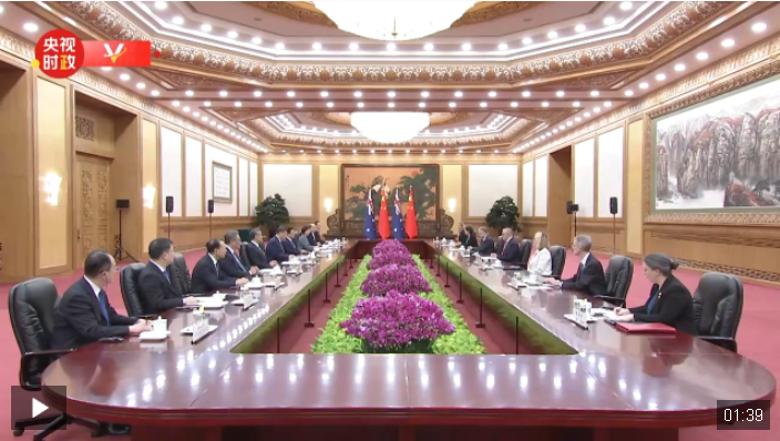 阿尔巴尼斯说:“主席先生,我很高兴今天再次同您会面,澳大利亚珍视同中国的关系,将继续以冷静和一贯的方式推进双边关系,这符合我们的国家利益。从这点来说,我们的双边关系非常积极,这符合我们的国家利益,也符合本地区的利益。”
