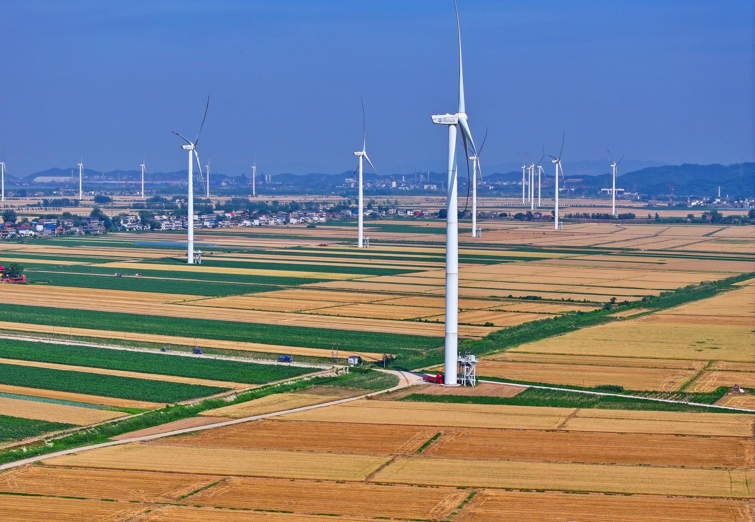 △江西九江长江沿岸的风力发电机