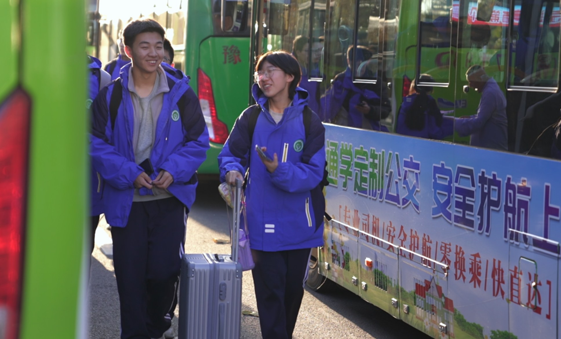 学生即将乘坐“通学定制公交”回家