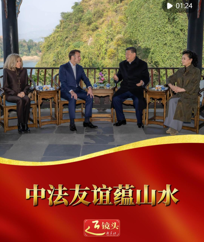 在首都之外的地方进行别开生面的互动,已成为近年习近平主席同马克龙总统交往的特色安排。从2023年在广州松园共赏古琴演奏《高山流水》,到2024年图尔马莱山口叙谈,再到2025年都江堰友好交流,中法元首一次次共同度过美好难忘时光,传为佳话。