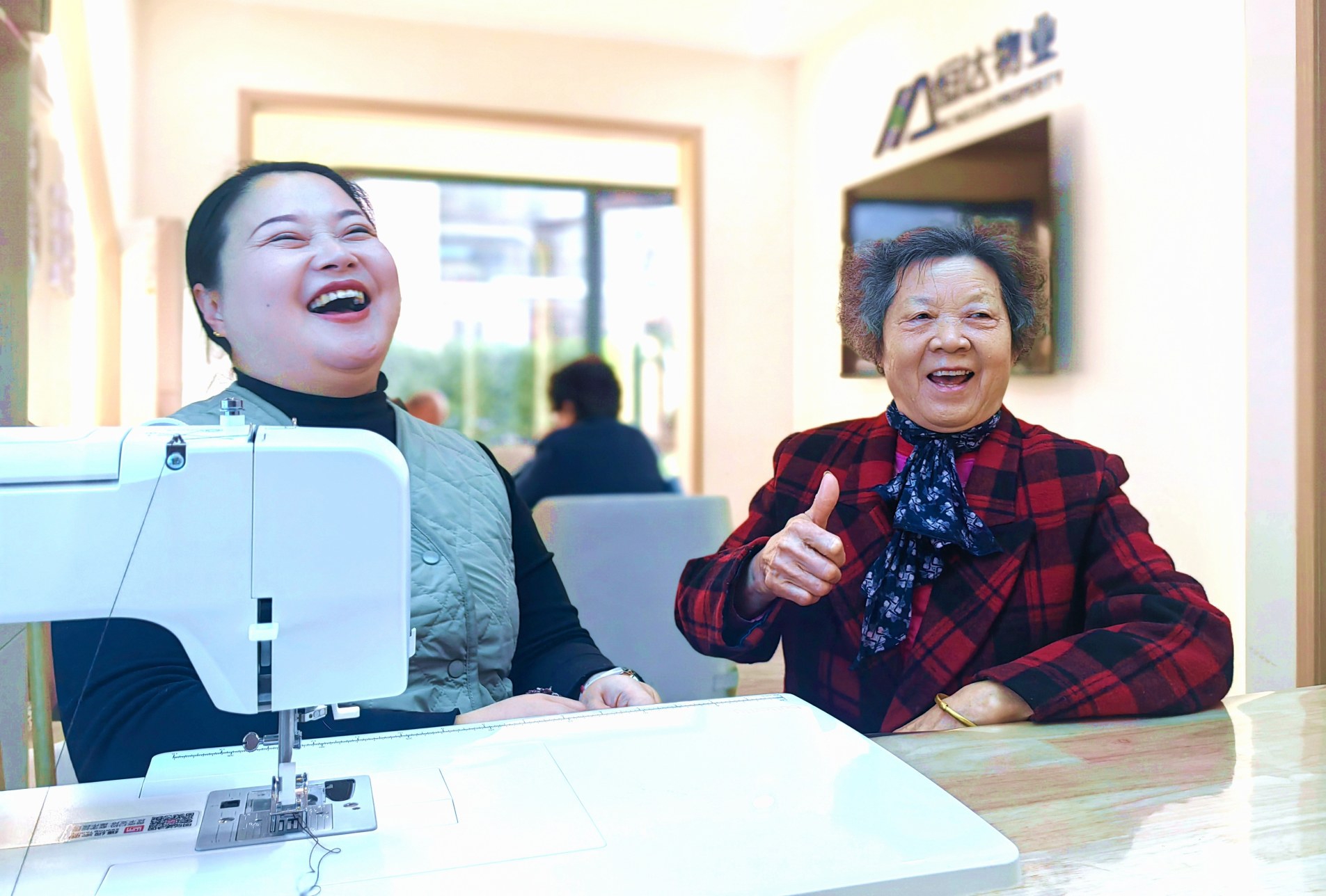 “哒、哒、哒……”12月15日下午,东城区天宝路街道西席雅苑社区恒达和园小区共享空间里,缝纫机规律而轻快的声音与居民的欢笑声交织成一曲生活交响乐。