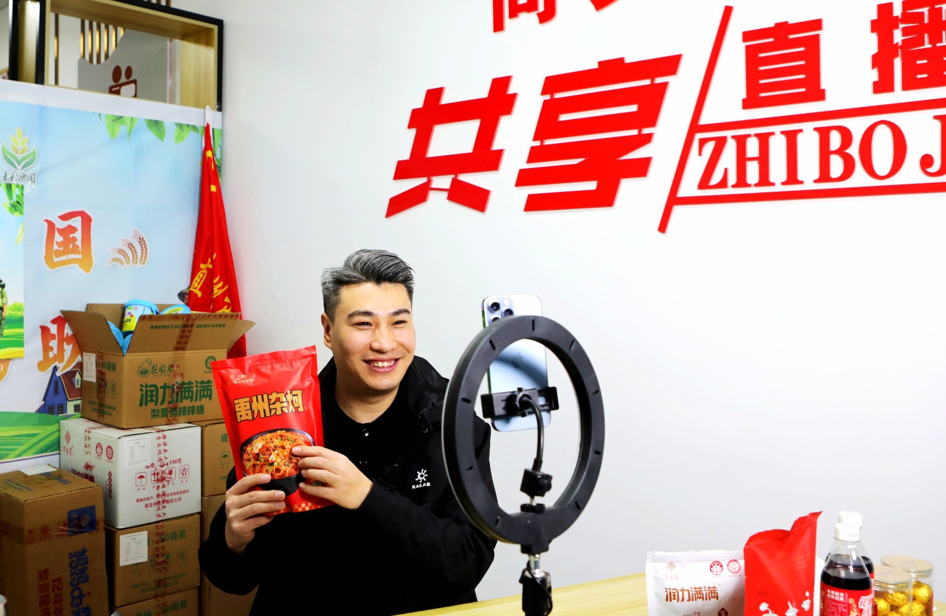 小小的直播间里,灯光映红了“主播们”镜头前的笑脸,也让幸福生活的温度升腾在每个人的心中。