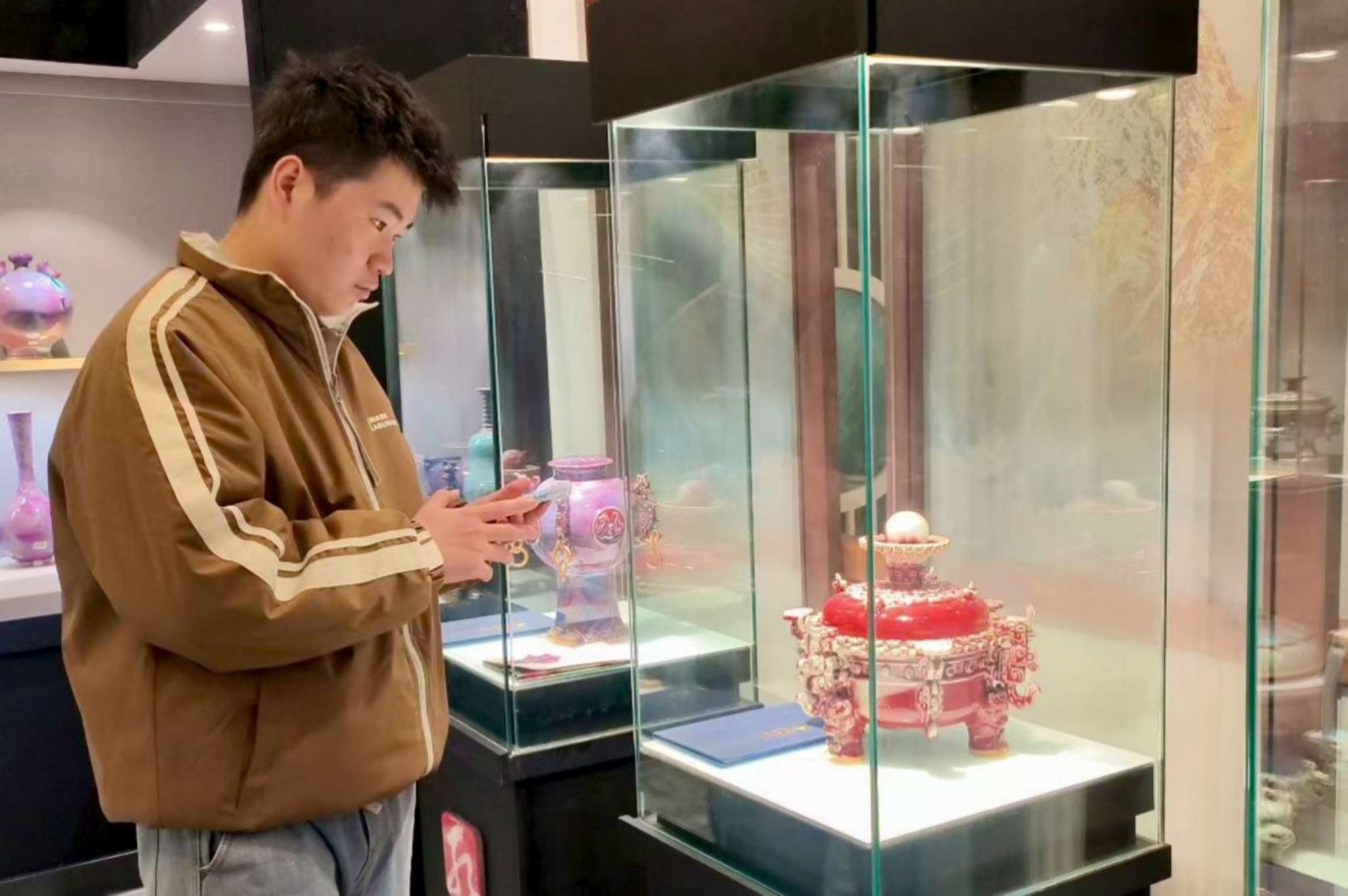 12月23日,许昌职业技术学院组织陶瓷设计与工艺专业在校生,走进市区孔家钧瓷展厅,开启了一场沉浸式的非遗文化之旅。此次研学活动将课堂知识与社会实践相结合,不仅让学生深入领略了禹州钧瓷窑变的神奇,也开阔了视野、增长了见识,更让大家体会到中华优秀传统文化的独特魅力与深厚底蕴。本报记者 黄增瑞 摄
