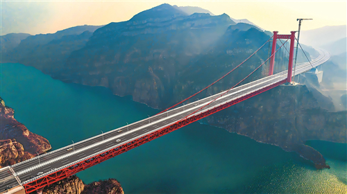 蜿蜒如龙的济新高速,长度约48公里,点睛之笔就是这座黄河三峡大桥。长1688.5米、主跨度555米,这座“咽喉工程”不仅是我省跨径最大的桥梁,也在世界工程史上留下河南地标。