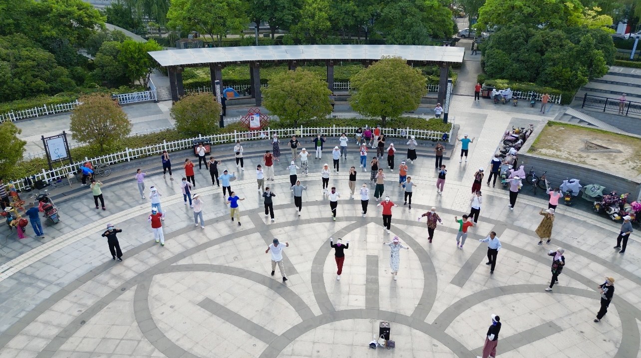 在许昌市区文峰游园,老人跳舞健身,乐享美好生活。资料图片