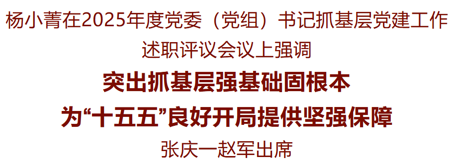 杨小菁指出,过去一年,全市各级党组织全面落实新时代党的建设总要求和新时代党的组织路线,扎实开展深入贯彻中央八项规定精神学习教育,推动各领域基层党建工作取得新进展新成效。今年是中国共产党成立105周年,是“十五五”规划实施开局之年,要聚焦在落实“两高四着力”中勇挑大梁、走在前列,全面强化基层党组织政治功能、组织功能,深入推进党风廉政建设,全力抓好意识形态工作,为实现“十五五”良好开局提供坚强保障。