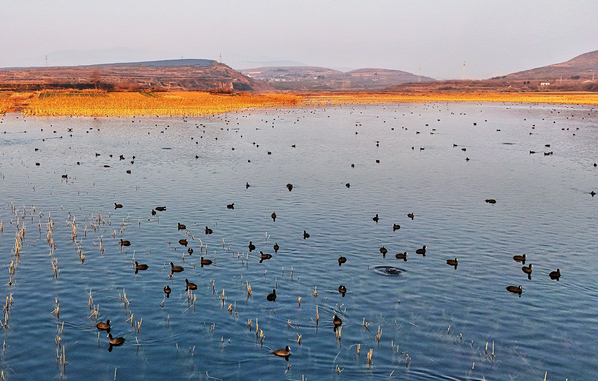 近年来,禹州市深植“两山”理念,持续推进水利设施提质、河湖长制落地,不断提升环境治理精细化水平。如今的郑湾水库天蓝水清、草木繁茂,优良的生态环境让越冬候鸟逐年增多,已成为候鸟越冬的“天然驿站”,这不仅是禹州生态保护成效的生动注脚,也为冬日增添了满满的生机与暖意。