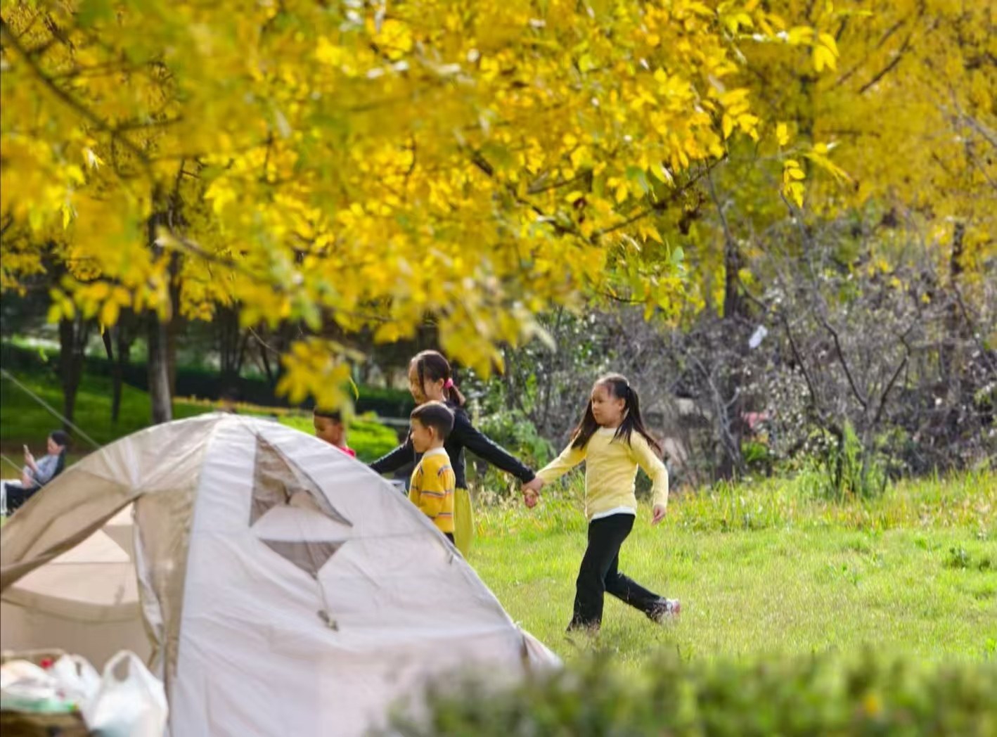 无须远行,出门就是露营胜地。带上帐篷,备上美食,到公园绿地享受一段惬意时光,已成为当下不少家庭的休闲模式。
