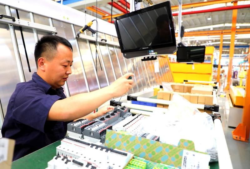 许继电气股份有限公司风电控制车间的员工正在加紧生产。本报记者 谭宜姝 摄