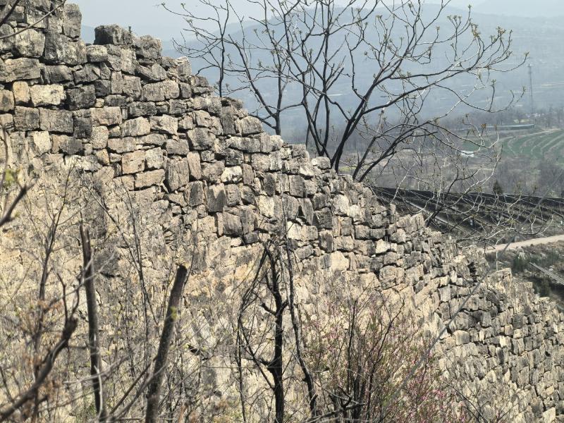 记者沿着高耸的寨墙行走,看到石头缝里钻出嫩黄色的野花,粉红色的桃花点缀在灰褐色的城墙间,把这里营造出柔和的氛围。
