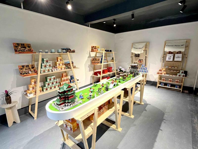 走进园区,东侧集中布局的五大特色功能空间人头攒动。曹小胖、关二哥原创IP潮玩馆内,全国独有的手工沙盘实景构建起沉浸式三国文化场景,人物模型栩栩如生,历史风云仿佛触手可及。两大IP以三国历史人物为原型原创打造,已推出多款潮流形象,盲盒预售量突破5000组,成为园区最具市场号召力的文创产品。曹魏文化衍生品专区里,魏王杯、主公下午茶钧瓷杯等特色文创吸引了不少年轻人细细把玩,魏八美文化饰品专区的手串、文创饰品也颇受青睐。