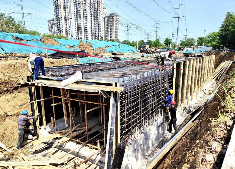 “现在我们正在加班加点施工,工程预计在汛期前完工。届时,雨水将通过箱涵直排,不仅能彻底解决周边道路积水问题,保障居民出行安全,还能减少河水对鹿鸣湖水质的影响,让鹿鸣湖的湖水更清澈。”许昌水利建筑工程有限公司施工现场负责人袁伟龙说。